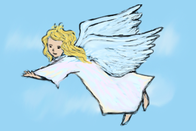 Eine Bildgeschichte bestehend aus 4 Bildern zum kostenlosen Download als PDF-Dokument. (Aus dem Bilderbuch "Der kleine Engel, der nicht wachsen wollte") Detailansicht